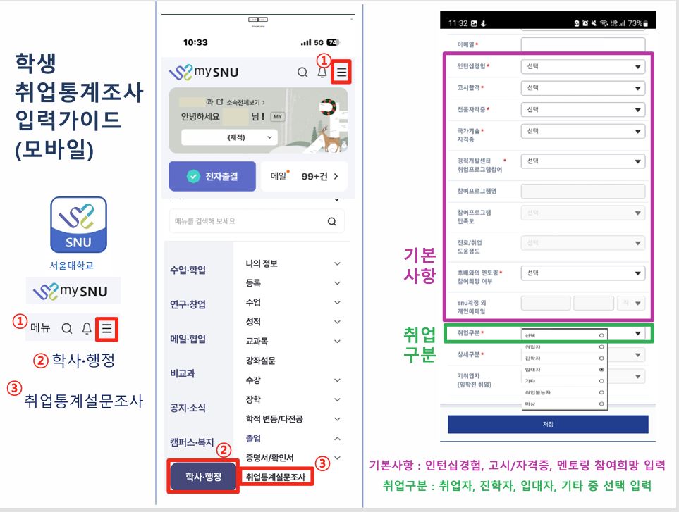 [마이스누앱 - 학사•행정- 취업통계 설문조사] 자세한 사항은 첨부파일 확인 바랍니다.