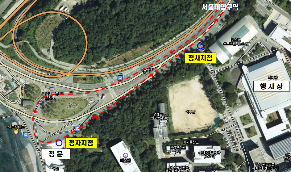 2) 11:00 ~ 16:00 : 서울대입구역 ↔ 포스코스포츠센터 대로변 (정문 정차) ※행정관 미정차