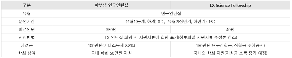 신규 개설 LX Science Fellowship은 더 적은 인원을 모집하며, 많은 지원금과 수혜증서를 제공드립니다.