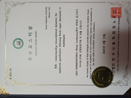 2025-02-15 l 조회 95한민수 석박통합과정생 한국식물학회 Winter Conference 우수포스터상 수상