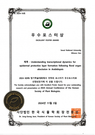 2024-11-05 l 조회 96한민수 석박통합과정생 식물학회 우수포스터상 수상