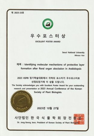 2023-10-27 l 조회 13한민수 석박통합과정생 식물학회 우수포스터상 수상